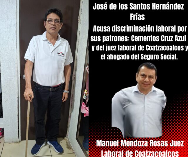 Un ex trabajador denunció haber sufrido discriminación de parte del juez laboral de Primera Instancia del Poder Judicial del Estado, Manuel Mendoza Rosas, del personal adscrito al mismo y del Instituto Mexicano del Seguro Social (IMSS) debido a su condición de discapacidad visual y de diabetes, la cual se agravó poco antes de ser despedido de manera injustificada en enero del 2024 tras casi cinco años de labor en la empresa Cementos Cruz Azul.