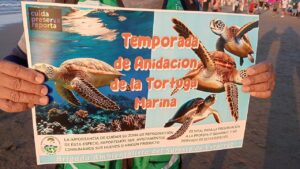 “Es una temporada muy importante para el Golfo de México, en Coatzacoalcos llegan tres de las seis especies marinas que llegan a México, por eso estamos compartiendo información a la población que llega a la playa para que sepan qué hacer en caso de encontrarse con un organismo de la especie”, indicó Alex Cepeda integrante de la organización.