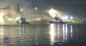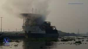 Se incendió buque Blue Phoenix en los muelles de Permaducto en Villa Allende, labores para sofocar el fuego se han extendido más de 12 horas