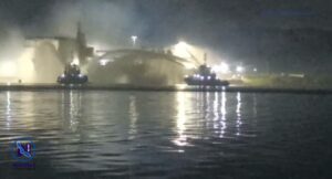 Durante la mañana de este sábado 8 de noviembre, remolcadores seguían en los alrededores, mientras que bomberos y personal especializado ingresaron a la embarcación a fin de extinguir en su totalidad las llamas.