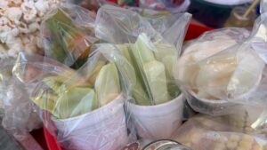 Los vendedores de alimentos a las afueras de las escuelas de Coatzacoalcos comenzaron a modificar las frituras por frutas, con lo que buscan que no se reduzcan sus ganancias.