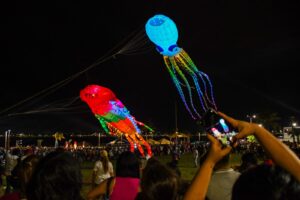 Expo Papalotl es la muestra de una serie de papalotes gigantes con vuelos en diferentes horarios en la zona de playa.