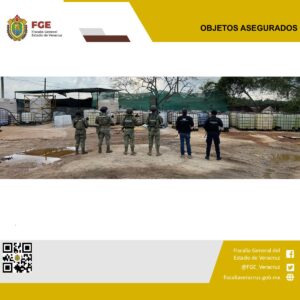 En un cateo autoridades estatales y federales aseguraron tambos y tanques con productos químicos en Coatzacoalcos.