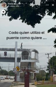 En redes sociales, usuarios comentaron que al menos utilizaba el puente peatonal, no como otros ciudadanos que siguen pasando por debajo en la transitada avenida, arriesgando su vida.