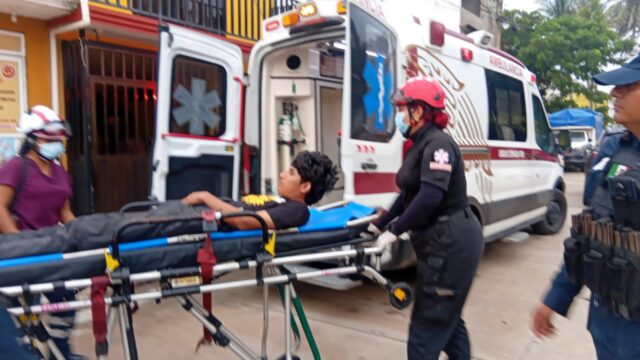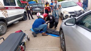 Un motociclista resultó con fractura del brazo derecho cuando chocó con tres vehículos, dos de estos estacionados en la colonia Las Gaviotas de Coatzacoalcos.