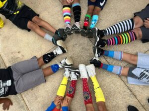 Los participantes llegaron con sus calcetas de diferentes pares, representando la alteración de cromosomas.