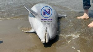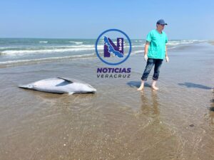 Le cortan cola a delfín y recala sin vida en la playa de Coatzacoalcos