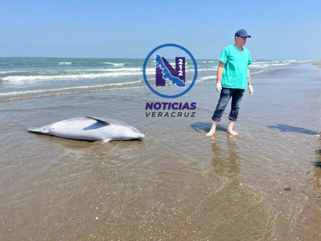 Un delfín sin vida apareció en la playa de Coatzacoalcos, al cetáceo le cortaron la aleta caudal, es decir de la cola, lo que habría provocado su muerte.