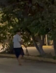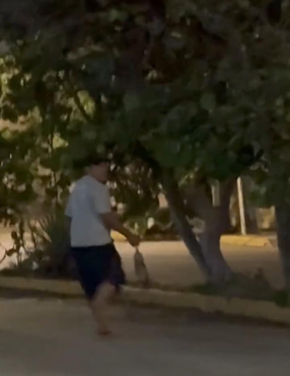 De acuerdo con la denuncia, luego de haber sido videograbado, el sujeto fue a dejar a un terreno baldío al animalito, llevándolo desde la cola.