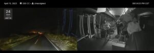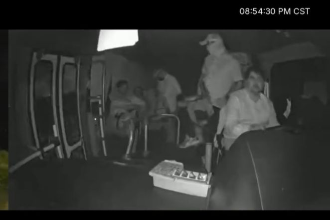 En un video compartido por Transportes Chacalapa, se ve el momento en que los delincuentes con el rostro cubierto obligan al operador a reducir la velocidad y apagar las luces del interior.