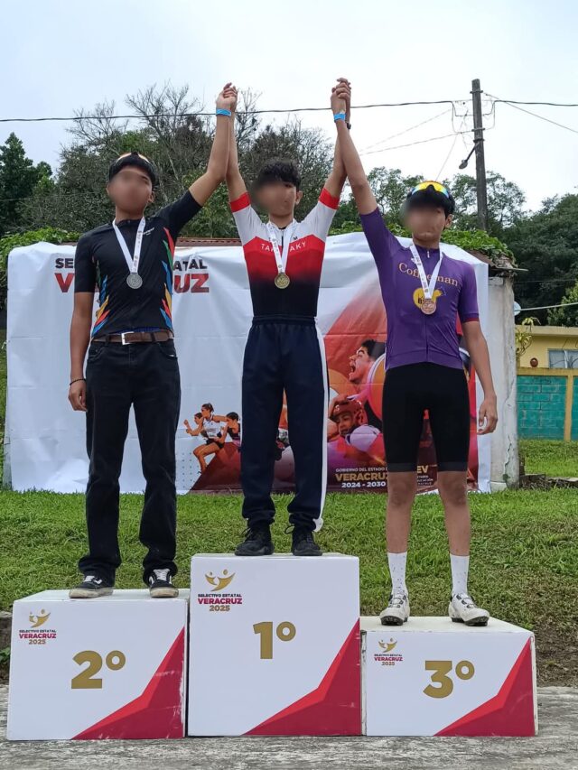 Tuxpan, Ver., 21 de febrero de 2025.- Coatzacoalcos se corona en el Selectivo Estatal de Ciclismo, celebrado en Tuxpan, al obtener tres medallas de oro en la prueba de Ruta, gracias a la entrega, resistencia y fortaleza de los deportistas porteños Jade Nayeli Romero Peña, Ciara Edgerli Ortiz Rojas, Sebastián Argüelles Castellanos y Rey David Eloísa Domínguez.