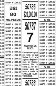Dicho monto corresponde al billete 50787 y las dos primeras series se vendieron en una agencia de Coatzacoalcos, mientras que la tercera se vendió en línea.