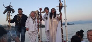 Acompañado de la recién nombrada Bruja Mayor, Reina Isabel Martínez Méndez, y del presidente nacional de la Alianza de Comunidades Indígenas, Roberto Valeriano Troncoso Queb, se realizó la Misa de Purificación en la laguna de Catemaco.