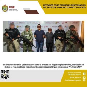 Poza Rica, Ver., 14 de marzo del 2025.-La Fiscalía General del Estado informa que, elementos de la Policía Ministerial en coordinación con la Secretaría de la Defensa Nacional, cumplimentaron una orden de aprehensión en contra de Edgar Jesús “N” y Yordanka Janeth “N”, quienes se desempeñaban como Policías Municipales al momento de los hechos, como probables responsables del delito de homicidio doloso calificado, cometido en agravio de la víctima M.P.S., integrante de un Colectivo de búsqueda de Personas Desaparecidas en esta ciudad.