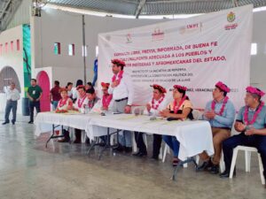 En Papantla, la secretaria de la Comisión de Asuntos Indígenas y de las Comunidades Afrodescendientes y representante del Distrito VI, diputada Miriam García Guzmán, encabezó el encuentro en el que se realizaron las etapas de acuerdos previos e informativa y reconoció el interés de la población y la labor de organismos como el Instituto Nacional de los Pueblos Indígenas (INPI) y la Comisión Estatal de los Derechos Humanos de Veracruz (CEDHV).