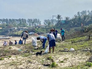 Dicha actividad la realizaron integrantes de la Asociación Civil Regenerando Nuestro Entorno y el Comité de Vigilancia de Vida Silvestre de los Tuxtlas, con el lema “Océanos limpios, Playas saludables”.