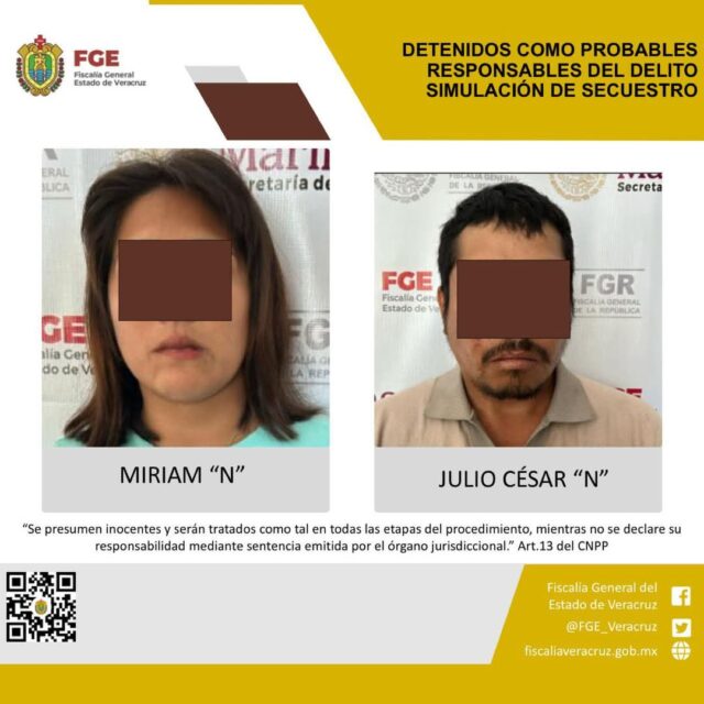 La Unidad Especializada en Combate al Secuestro con sede en Coatzacoalcos, en coordinación con personal de la Policía Ministerial, detuvieron a Miriam «N», por presuntamente haber simulado su secuestro y junto con ella, fue detenido Julio Marcelo «N», originario de las Choapas, momentos después de haberse apoderado de una motocicleta que se entregó como pago de rescate.
