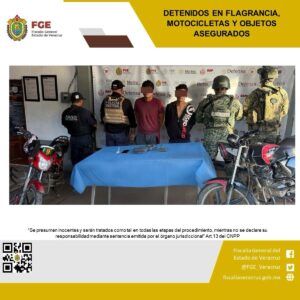 Durante el operativo se detuvo en flagrancia a Brian Yair “N” y Marcos “N”. Asimismo, se aseguraron motocicletas y una sustancia con características similares a las del cristal.