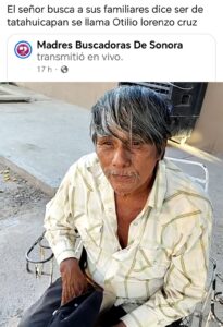 Este martes se reencontró con sus seres queridos, luego de haber sido reconocido en un video en vivo en Facebook del colectivo Madres Buscadoras de Sonora, quienes entrevistaron a personas de la tercera edad en un asilo de ancianos en la comunidad Miguel Alemán, cerca de Hermosillo.